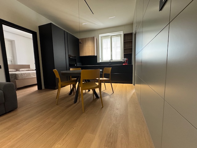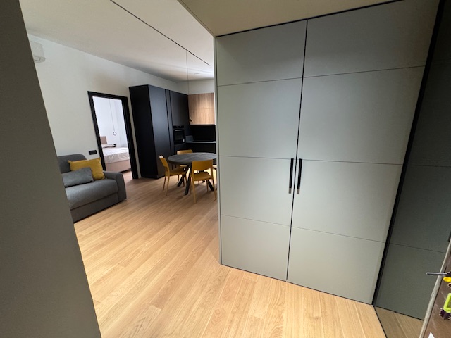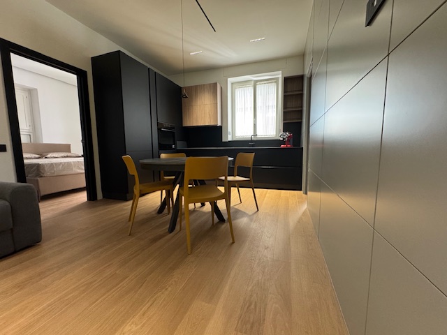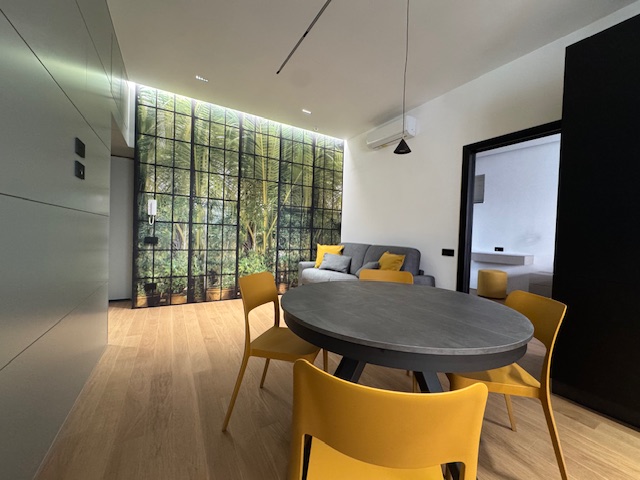 Appartamento ad uso transitorio (contratto con durata massima 18 mesi) sito in Castellammare di Stabia alla Piazza Spartaco posto al secondo piano senza ascensore ma in fase di montaggio composto da ingresso sul quale troviamo una comoda zona armadi tutti fatti su misura, ampio living con cucina a vista angolare di grande design della "Veneta Cucine" con piano cottura a induzione e completa di elettrodomestici, ampia camera da letto con doppio punto luce oltre porta finestra con accesso al balcone, bagno di design unico con doccia filo pavimento e balcone verandato con comoda zona lavanderia. L'appartamento e' stato appena ristrutturato e rifinito con materiali di pregio con pavimentazione in parquet, finiture di design e dotato di climatizzatori. Luminoso. Arioso.