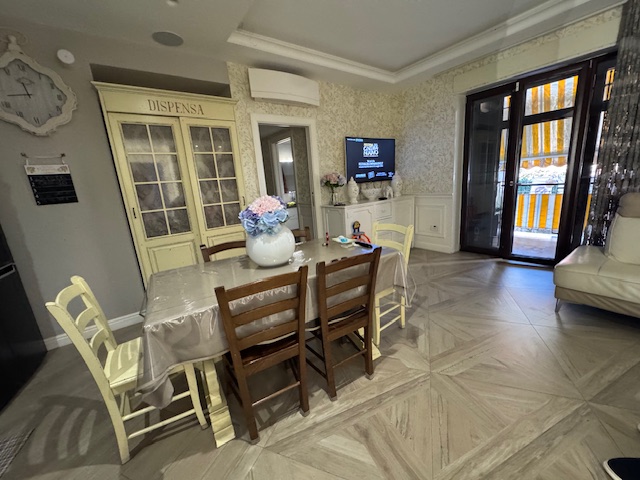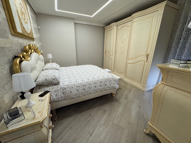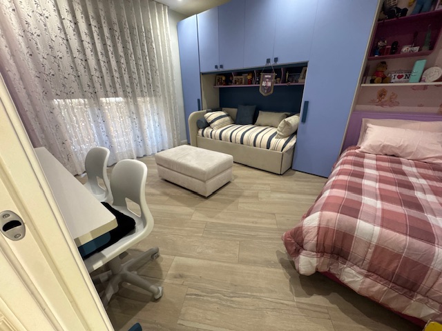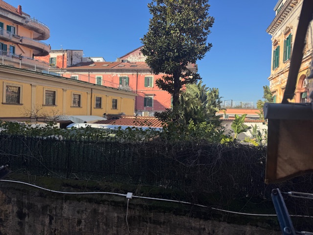 Appartamento situato a Castellammare di Stabia, in via Catello Fusco, posizionato al piano rialzato ma con affaccio al primo piano verso Corso Vittorio Emanuele. La superficie interna è di 85 mq e si compone di ingresso, soggiorno con cucina a vista, disimpegno, due camere da letto, un bagno, un ripostiglio, oltre a due ampi balconi per un totale di 15 mq. L'immobile è stato accuratamente ristrutturato e presenta finiture di pregio, tra cui infissi in legno e alluminio con triplo vetro, grate di sicurezza blindate, tapparelle elettriche, impianto di allarme di ultima generazione, telecamere di sorveglianza, porte interne scorrevoli firmate Garofoli, porta blindata con serratura automatica, zanzariere, armadio guardaroba su misura e boiserie. I balconi, entrambi loggiati, sono attrezzati con una struttura protettiva contro le intemperie e dotati di zona lavanderia e cucina esterna.